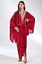 Featuring a red top in silk crepe base with sequins hand embroidery. It is paired with a draped skirt. Accentuate it with statement jewellery and heels for festive occasions.