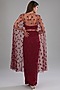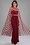 Featuring a red draped skirt in silk nylon base. It is paired with a bustier and a sheer cape having brooch embroidery. Accentuate with statement earrings and heels for a cocktail party or sangeet ceremony.