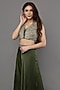 Featuring a green bustier in hammer satin and organza base with embellishments and V-neckline. It is paired with matching palazzo pants having embellished belt and a dupatta. Perfect for mehendi or festive occasions.