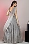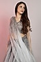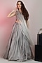 Featuring a grey lehenga in pure silk organza base with tassel and patchwork embroidery. It is paired with a draped pleated embellished bustier and a dupatta. Perfect for a cocktail or engagement ceremony.