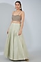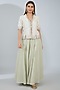 Featuring an ivory straight jacket in raw silk base with dori and aari hand work. It is paired with a brocade silk skirt. Accentuate with statement earrings and heels for a festive look.