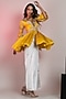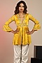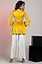 Featuring a mustard peplum in modal silk satin base with a v-neckline, embroidery and bell sleeves. It is paired with silver cotton silk satin straight pants. Perfect for haldi or festive occasions.