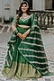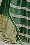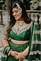 Featuring a dark green lehenga in moonga banarasi silk and raw silk base. It is paired with a matching blouse having beads embroidery and an organza dupatta.