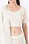 Featuring an off-white lehenga in chanderi base with zari and butti embroidery. It is paired with a matching blouse and a dupatta.