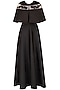 Black Pleated Cutout Gown and Floral Embroidered Cape Set