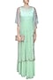 Green Pistachio Birds Embroidered Cape, Blouse and Palazzo Pants Set