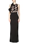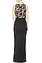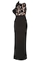 Featuring a black long dress in scuba base. It has a dusty rose sheer net bodice with black thread and sequins floral pattern all over and has a black ruffle on one side. FIT: Cut for relaxed fit.