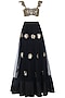 Featuring a black lehenga skirt in net base with sequins embroidery. It is paired with matching ruffle blouse and dupatta.
