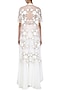 This set features an off white halter neck blouse in mesh base with floral sequins and cutdana embroidery on the front and back. It is paired with an off white flared kalidaar georgette palazzo pants and net embroidered dupatta.