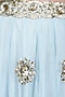 Featuring a pastel blue lehenga in net base with sequins hand embroidered floral motifs and a wide silk border. It is paired with a gold sequins embroidered blouse and matching dupatta.