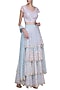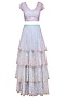 Pastel Blue and Pink Floral Embroidered Tiered Lehenga Set