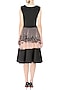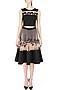 This set features a black sleeveless top in scuba base with sheer net detailing on the yoke appliqued with black floral thread embroidery. It comes along with a scuba black skirt with sheer net detailing from the waist with black birds embroidered all around. FIT