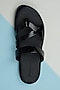 Featuring a pair of black criss-cross sandals in vegan leather base. It has a leather underlining and 0.5-inch heels.