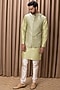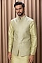 Featuring a mint green nehru jacket in cotton silk base with machine embroidery. This contains only one piece.