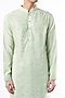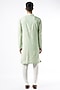 Featuring a mint green kurta in cotton silk base with mirror and machine embroidery. It is paired with churidar pants. Perfect wear for a festive occasion, exuding traditional charm and elegance.