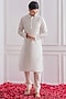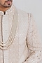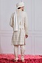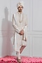 Featuring an off-white sherwani in pure georgette and cotton silk base with hand and machine embroidery. It is paired with matching churidar pants, a kurta, a cummerband, a stole, and a safa.