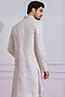 Featuring an off-white sherwani in pure georgette and cotton silk base with hand and machine embroidery. It is paired with matching churidar pants, a kurta, a stole, and a safa.