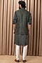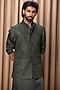 Featuring an olive green bundi jacket in pure georgette base with thread machine embroidery. This contains only one piece.
