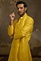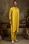 Featuring a yellow kurta in georgette base with thread machine embroidery. It is paired with salwar pants and a stole. Perfect wear for a festive occasion, haldi, wedding or engagement ceremony, exuding traditional charm and elegance.
