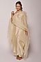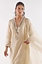 Featuring an ivory kaftan in pure chanderi base with mirror work. It is paired with pants and an organza dupatta having mukaish work. Accentuate it with pearl studs and embroidered flats for a stylish ensemble, ideal for festive brunches or family gatherings.