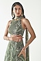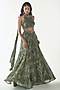 Featuring a mehendi green lehenga in embroidered chinon base. It is paired with a halter blouse and a dupatta having coin latkan detailing. Accentuate it with a statement kundan choker and embellished heels for a stylish ensemble, ideal for wedding festivities or grand receptions.