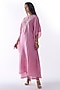 Featuring a pink kaftan in muga silk base with embroidery. It is paired with pure chanderi pants. Accentuate it with pearl studs and embroidered flats for a stylish ensemble, ideal for festive brunches or family gatherings.