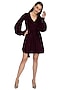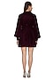 Featuring a purple dress in velvet base. It has a collared neck, high cuffs and flared bishop sleeves.