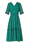 Featuring a teal tier dress in chiffon base with pleating through out.