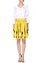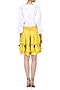 Featuring a tuscan sun double layer skirt in linen satin base with thread stitches texture and ruffled hem.