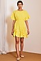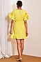 Featuring a yellow daisy dress in cotton base with ruffled godets on the sleeves and bottom.