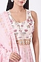 Featuring a blush pink lehenga in cotton silk base with digital print including beads, pearls, and sequins hand embroidery. It is paired with a contrasting blouse, a cape dupatta, and a sling bag.
