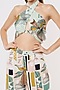 Featuring a powder cyan bodice top in modal cotton satin base with floral print and aari work. It is paired with contrasting off-white palazzo pants.