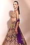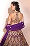 Featuring an amethyst purple lehenga in tussar silk base with gold floral sequins motifs embroidery. It is paired with a blouse having a halter neckline and an organza embroidered dupatta. Accentuate it with gold jewellery and a sleek low bun or gajra for a regal look, ideal for weddings or receptions.