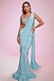 Aqua Blue Crepe Draped Saree Set