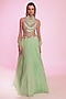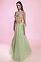 Featuring a mint green lehenga in silk organza base. It is paired with a net blouse having mirror, sequins and bead embroidery, including halter neck and dupatta. Accentuate it with statement jewellery and heels for a reception, cocktail, sangeet or engagement ceremony.