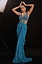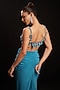 Featuring a teal blue draped dress in net and crepe base with beadwork, sequins and crystal embellishments, including plunging v-neckline. Accentuate it with statement jewellery and heels for cocktail events, wedding ceremony or festive occasions.