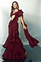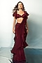 Wine Crepe Draped Ruffled Saree Set