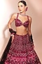 Featuring a wine red lehenga in tussar silk base with sequins and mirror work. It is paired with a sculpted blouse and a black net sheer dupatta. Accentuate it with traditional mirror-finish jewellery and metallic heels for a vibrant ensemble, ideal for sangeet nights, festive celebrations or lively wedding functions.