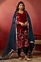 Cherry Red Velvet Hand Embroidered Kurta Set