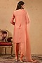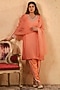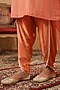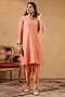Featuring a coral kurta in chanderi base with hand work. It is paired with muslin dhoti pants and an organza dupatta. Accentuate it with polki stud earrings and block heels for weddings or festive ceremonies.
