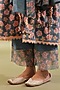 Featuring a greyish-blue A-line kurta in cotton base with print and lace detailing. It is paired with palazzo pants. Accentuate it with statement jewellery and heels for a festive occasion, pooja ceremony or family gathering.