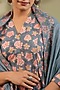 Greyish Blue Cotton Printed A-Line Kurta Set