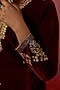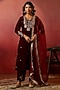 Featuring a maroon kurta in velvet base with machine embroidery. It is paired with pants and dupatta. Accentuate it with kundan polki earrings, embellished juttis and a potli bag for festive occasions or sangeet ceremony.