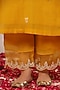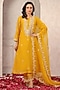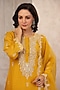 Featuring a mustard yellow kurta in chanderi base with machine embroidery. It is paired with pants and an organza dupatta. Accentuate it with gold jhumkas and embellished juttis for a rich, festive look, perfect for festive occasions, pooja or haldi ceremony.