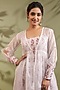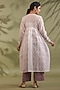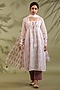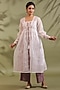 Featuring an off-white jacket in kota doria and cotton base with handblock print. It is paired with a kurta, pants and a dupatta. Accentuate statement jewellery and heels for a festive or family gathering.