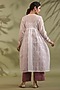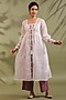 Featuring an off-white jacket in kota doria and cotton base with handblock print. It is paired with a kurta and pants. Accentuate statement jewellery and heels for a festive or family gathering.