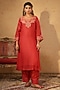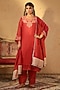 Featuring a red kurta in chanderi base with aari, patch and threadwork. It is paired with palazzo pants and a red dupatta. Accentuate it with statement jewellery and heels for festive occasions or wedding ceremony.
