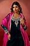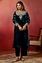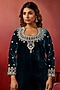 Featuring a teal kurta in velvet base with hand embroidery. It is paired with pants and dupatta. Accentuate it with kundan polki earrings, embellished juttis and a potli bag for festive occasions or sangeet ceremony.