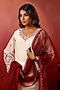 Featuring a white brown kurta in chanderi base with machine embroidery. It is paired with palazzo pants and a dupatta. Accentuate it with jhumka earrings and comfortable flats for festive day events or sangeet celebrations.