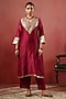 Wine Chanderi Threadwork Kurta Set